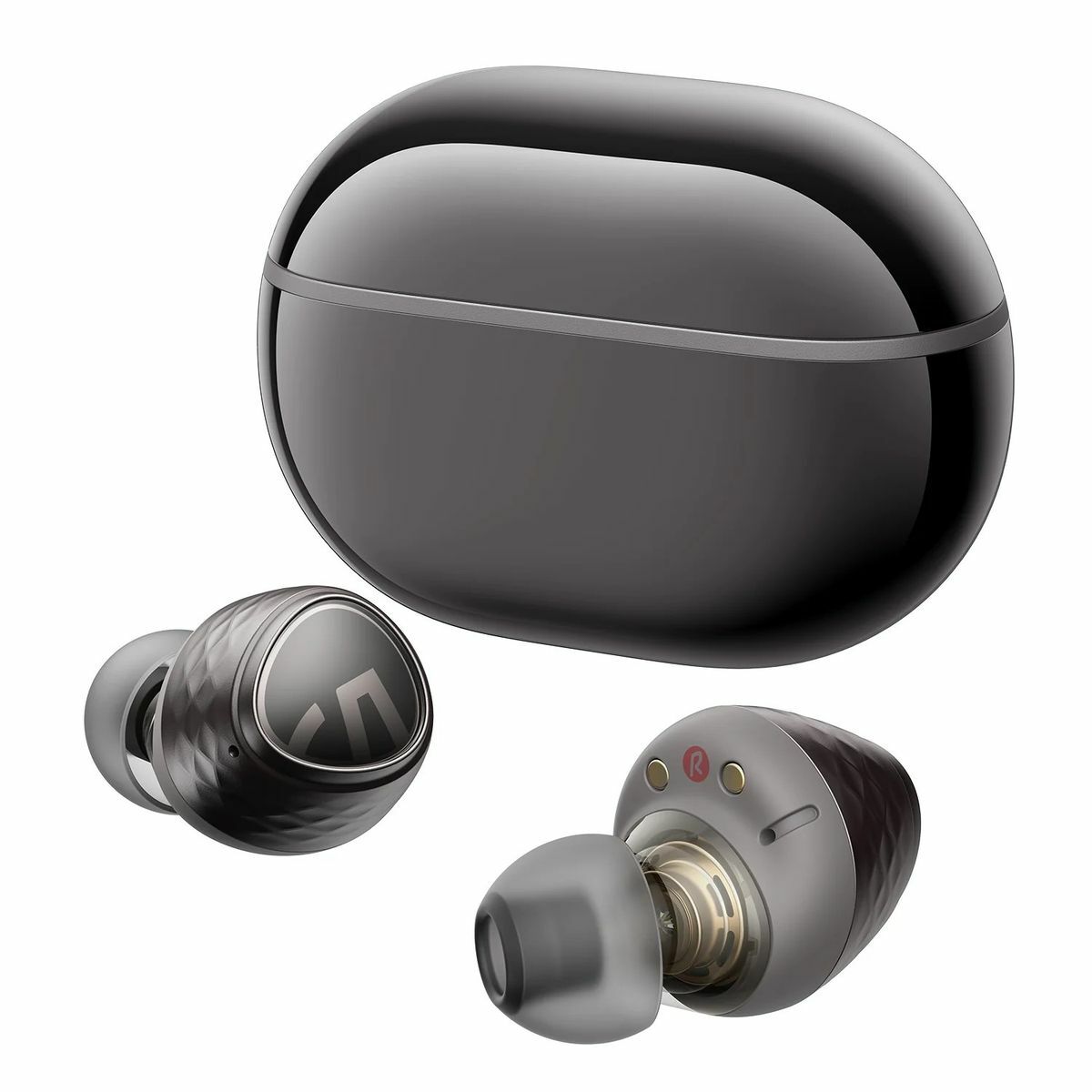 Bluetooth-наушники SoundPeats A6 эффективно снижают уровень шума на 90% с помощью гибридной технологии ANC. Звук не искажается в шумных местах: на оживленных улицах, в метро или в часы-пик. Для включения активного шумоподавления достаточно нажать кнопку на боковой панели.